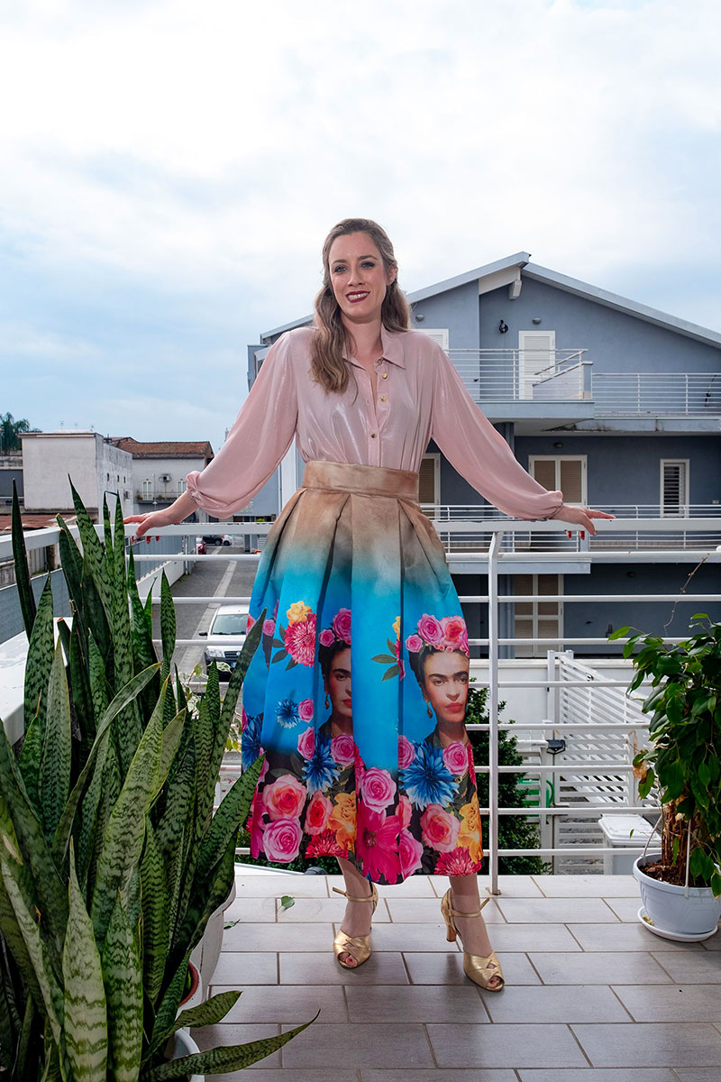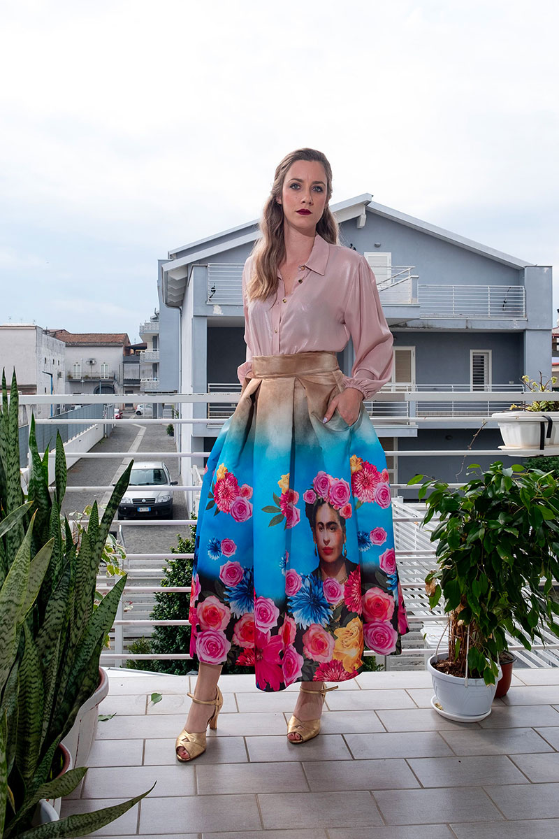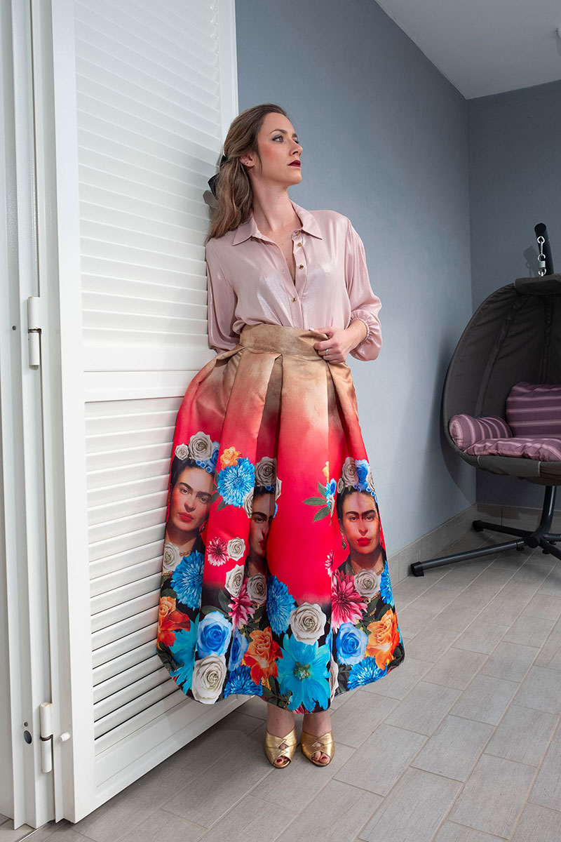 Gonna modello vita alta a ruota Frida Kahlo